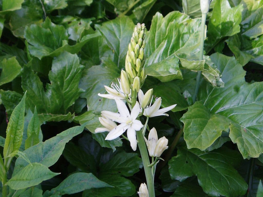 “Camassia Leichtlinii Alba” Is A Hardy Perennial From The Northwestern United States And Southern British Columbia. “Camassia Leichtlinii Alba” Bears Steepled Clusters Of Starry Creamy White Flowers Atop Tall Leafless Stems In Early Summer. Its Cultivar “Blue Diamond” Has Deep Blue Flowers. The Clumps Of Strap-Shaped, Keeled, Green To Gray-Green Leaves Go Dormant In Summer. The Leaves And Stalks Grow From Large Bulbs With Dark Tunics.
