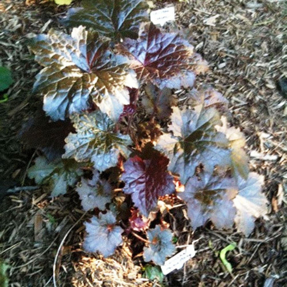 “Palace Purple Alumroot”, Is An Evergreen Herbaceous Perennial, Grown For Its Mounded Clumps Of Glossy, Greenish-Purple Maple-Like Leaves. The Large Leaves, Which Are Beet-Red On Their Undersides, Retain Their Colour All Year If Given Enough Light. In Summer, Tall Stems Topped With Loose Panicles Of Tiny Greenish, Creamy White Flowers Emerge From Basal Clumps. The Flowers Attract Bees And Hummingbirds. Alumroot Is Native To Western North America, Where It Grows In Fertile But Moist, Well Drained Soil.