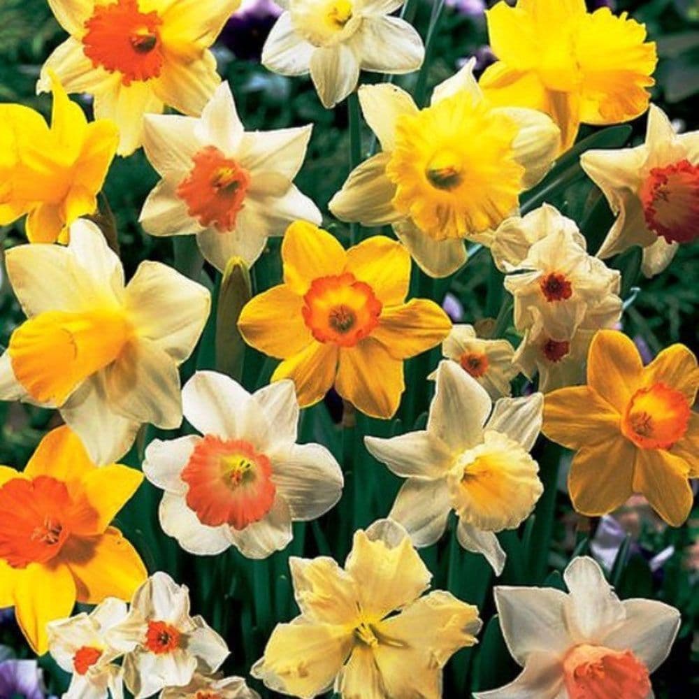 A Symphony Of Colour, Nothing Brings On Spring Like The Bright Sunny Colours Of Daffodils. These Hardy Spring Blooming Bulbs Are Distinguished By 6 Showy Petal-Like Tepals That Surround A Protruding Tubular Floral Structure Called A Corona. They Are Most Commonly Found In Shades Of Cream, Yellow, Orange, And Orange-Red And Have Long Green Strap-Like Leaves. Plant In Clusters For A Cluster Display.Also Look Good In Containers And Pots.