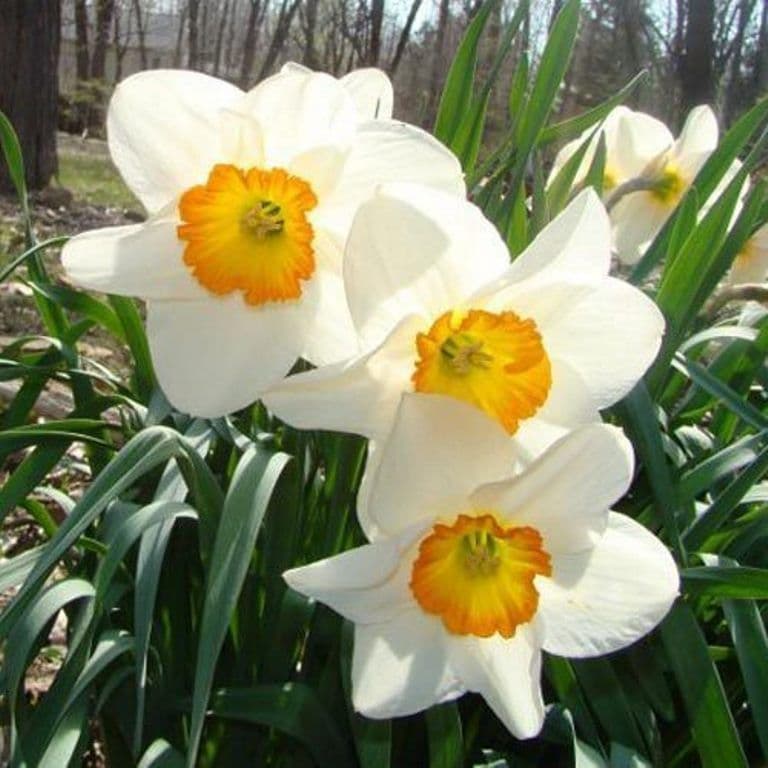 The Perianth Of “Sempre Avanti” Is White With A Large Corona Of Flared Orange And It Is Fragrant. It Is A Bulbous Perennial With Strap-Shaped Leaves